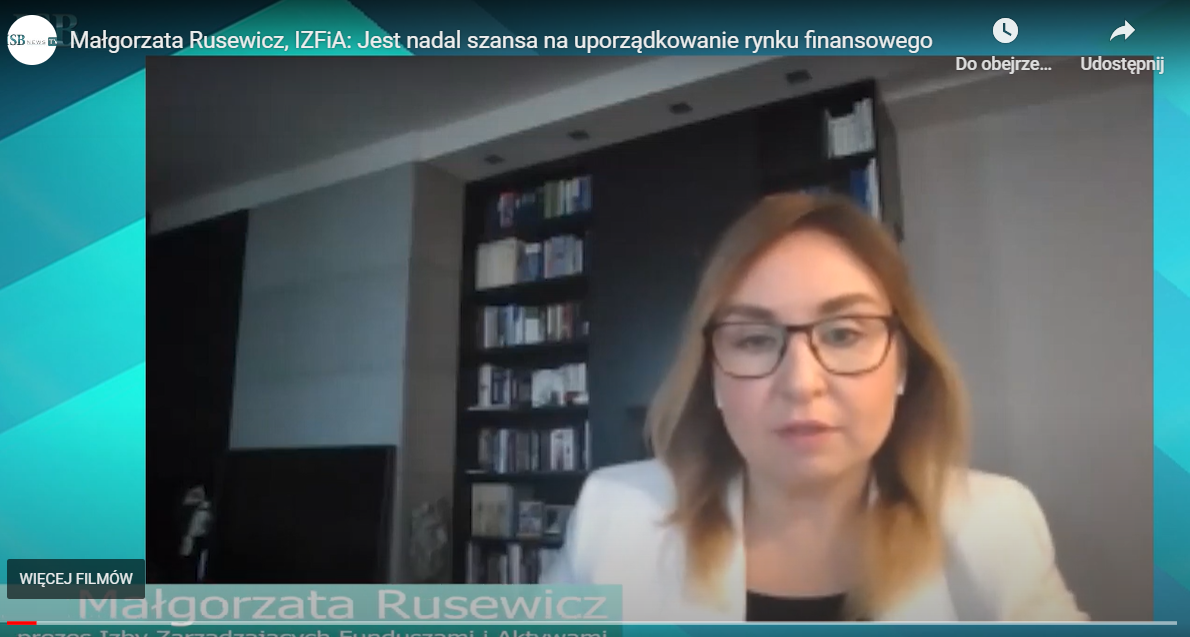 Zapraszamy do wysłuchania rozmowy z Małgorzatą Rusewicz na temat kluczowych zmian w nowej wersji ustawy mającej przyczynić się do rozwoju rynku finansowego oraz ochrony inwestorów. Ustawa ta wzbudza wiele emocji, warto zapoznać się z głosem prezesa samorządu TFI. Rozmowa została nagrana przez Agencję informacyjną ISBnews.